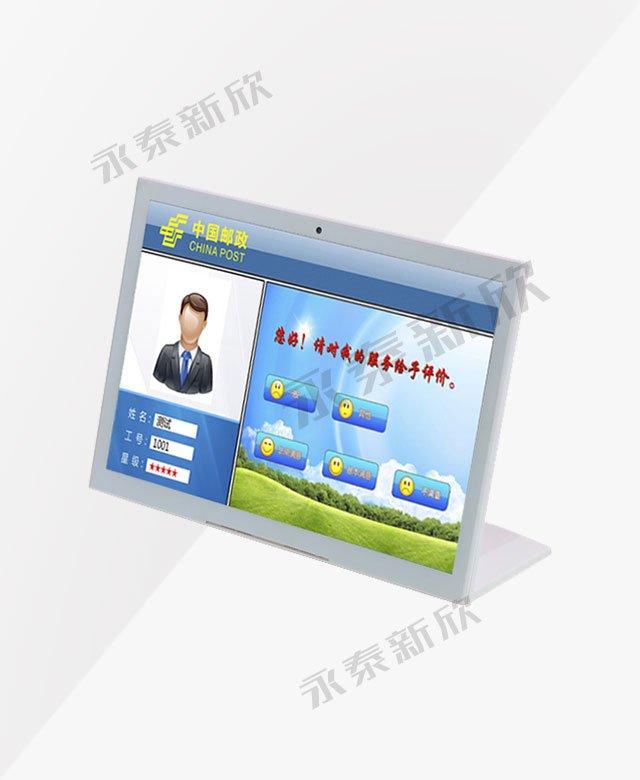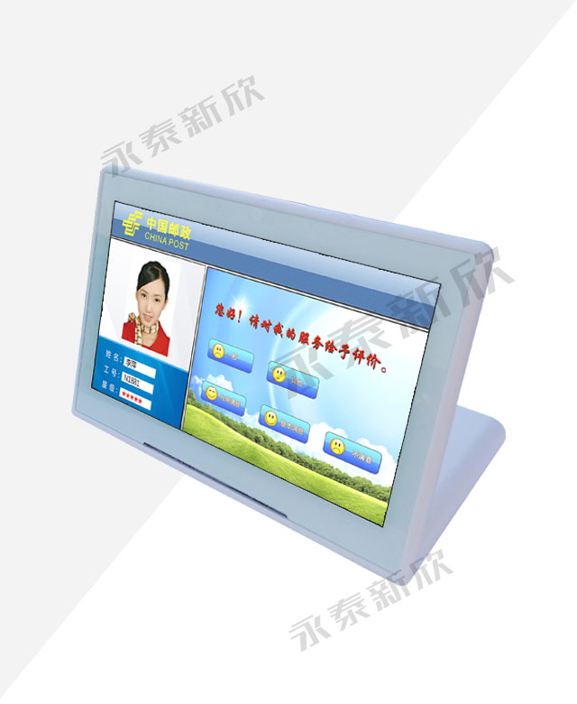 10英寸高清LCD顯示一體屏,顯示畫面更細(xì)膩、觸摸更靈敏 10英寸多點(diǎn)式電容觸摸屏,評價檔位可自由設(shè)置 流線型設(shè)計,造型流暢,符合人體工學(xué) 平板電腦級別的觸摸體驗(yàn),顯示清晰,手感舒適 可顯示日期,時間,可播放圖片或視頻動畫等格式 評價信息實(shí)時在線統(tǒng)計并自動生成報表,減少工作量 所有評價統(tǒng)計信息均可遠(yuǎn)程互聯(lián)網(wǎng)查詢,并設(shè)有多級查詢